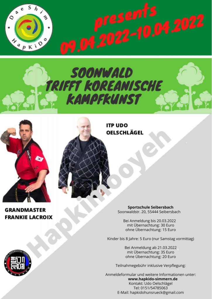 Vom 09. bis zum 10. April 2022 findet unter der Leitung von GM Frankie Lacroix mit der Unterstützung von Udo Oelschlägel, das erste Hapkimooyeh Seminar im Jahr 2022 statt.